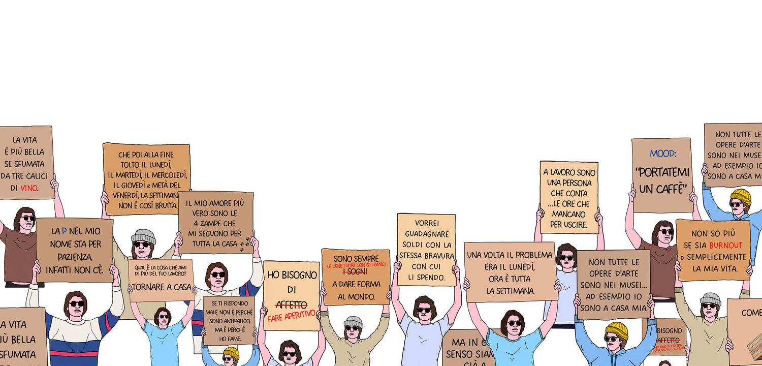 Un progetto artistico che sboccia spensierato, senza particolari aspettative, quasi per gioco. Le nostre idee e creazioni hanno riscosso grande successo e popolarità fin da subito, lasciandoci sorpresi e spiazzati. Tutto questo l’abbiamo visto come un segnale che la strada giusta si fosse presentata davanti a noi. È così che comincia il nostro cammino. Una missione che si pone l’obiettivo di regalare, con le nostre illustrazioni, un piccolo sorriso e una dose di leggerezza ai nostri compagni di viaggio, VOI.
